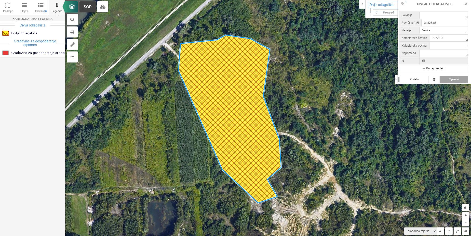 - Urejanje atributov in vektorskih podatkov prek spletne aplikacije